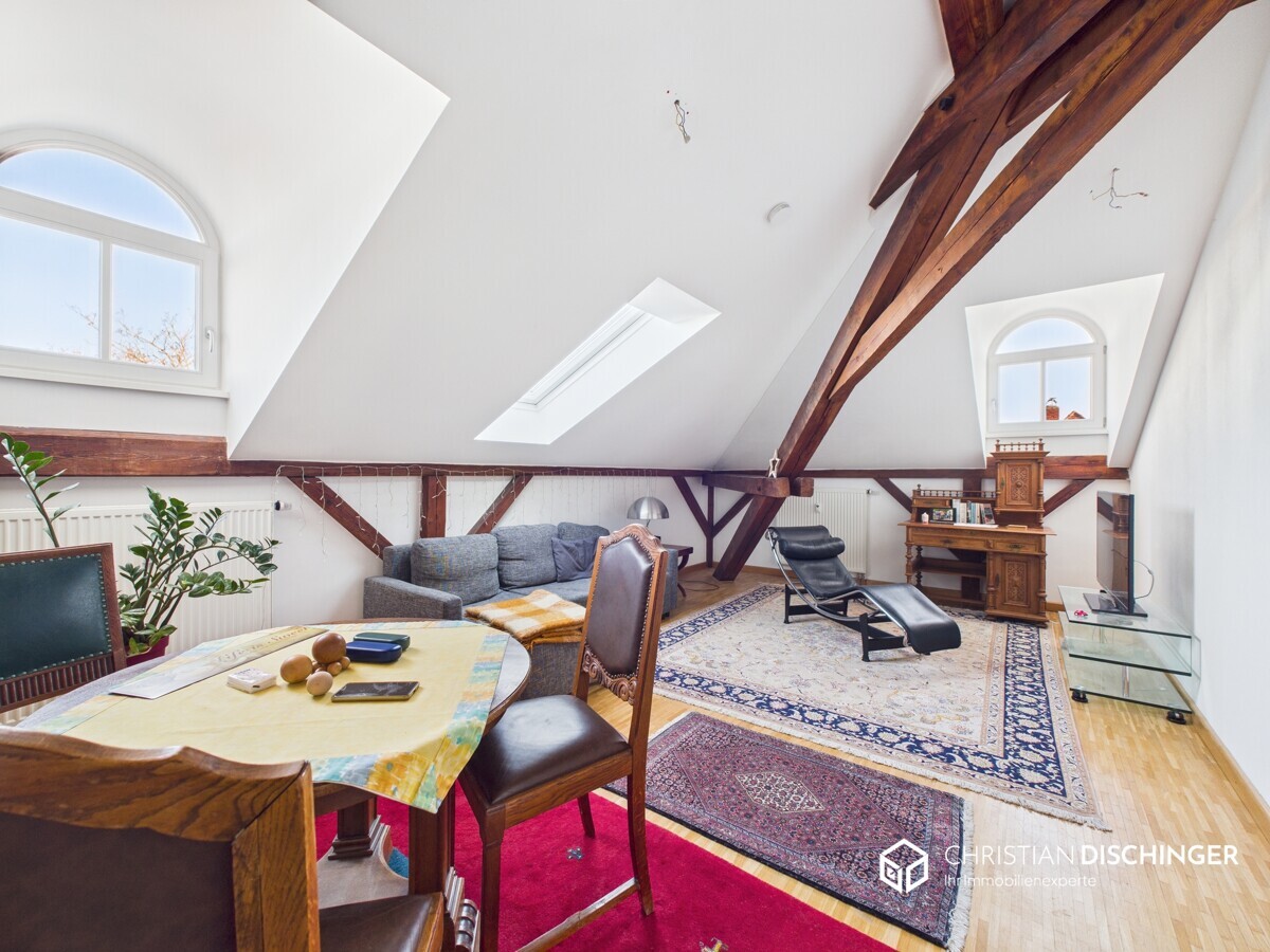 Diese charmante 2-Zimmer-Wohnung mit ca. 51 m² Wohnfläche befindet sich in einem liebevoll sanierten Altbau und verbindet historischen Charakter mit zeitgemäßem Wohnkomfort. Die durchdachte Raumaufteilung sorgt für ein angenehmes Wohngefühl und bietet ausreichend Platz für Singles oder Paare.Die zahlreichen Dachfenster lassen viel Tageslicht in die Räume und bieten eine helle, freundliche Atmosphäre. Ein besonderes Highlight sind die sichtbaren Deckenbalken, die den Altbaucharme hervorgeben und für ein stilvolles Ambiente sorgen.